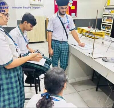 🔹 Experiment 1: To determine the radius of curvature of a given spherical surface using a Spherometer. 🔹 Experiment 2: To study the time period of a simple pendulum of a given length. Through these practical experiments, our budding scientists not only enhanced their scientific temperament but also experienced the joy of learning by doing. 🌟 # Physics Lab # Learning by Doing # Future Scientists # Exploring science # Curiosity + Experiments