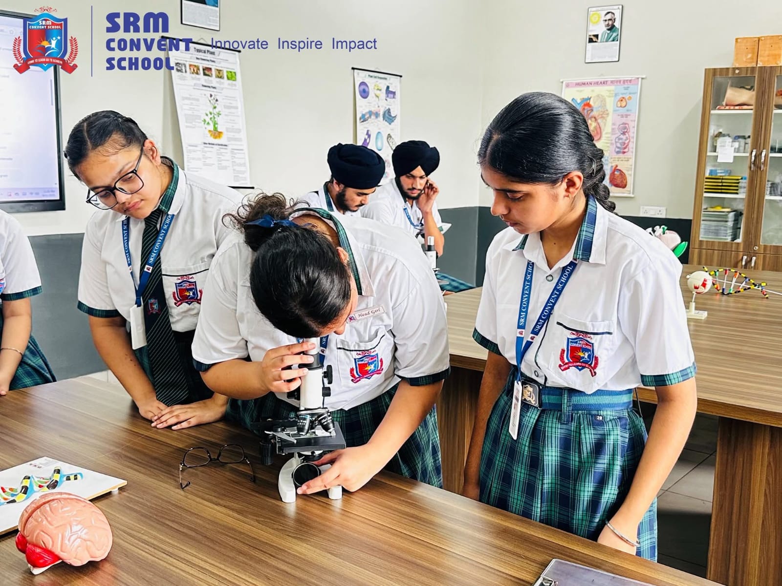 Students of Grade 11 (Medical Stream) at SRM Convent School enthusiastically engaged in hands-on learning as they performed experiments using a Microscope. 🧫🔎 Through careful observation, our budding scientists discovered the wonders of the microscopic world, enhancing their scientific curiosity, critical thinking, and practical knowledge. 🌱💡 At SRM, we believe in learning by doing, where every experiment becomes a step toward innovation and discovery. 🌟 # Hands-on Learning # Future Doctors # Scientific Spirit