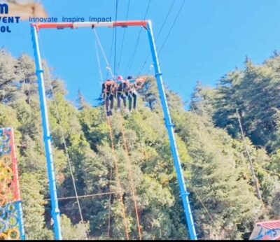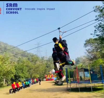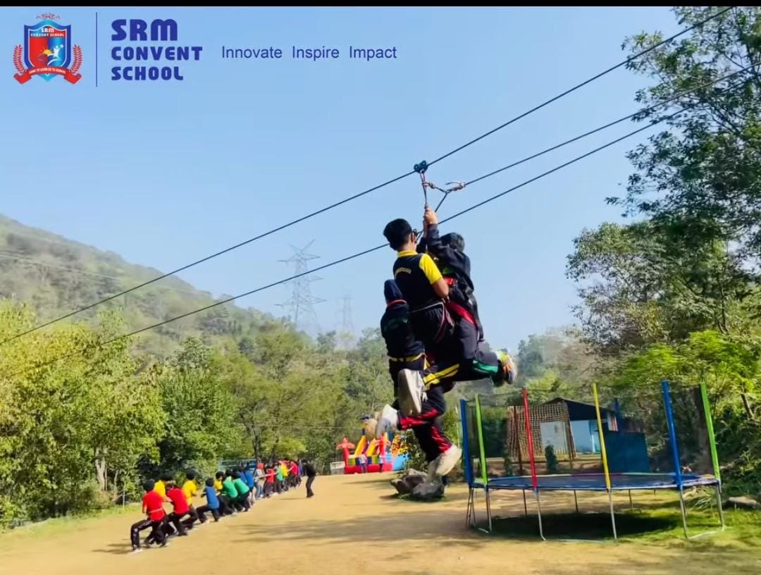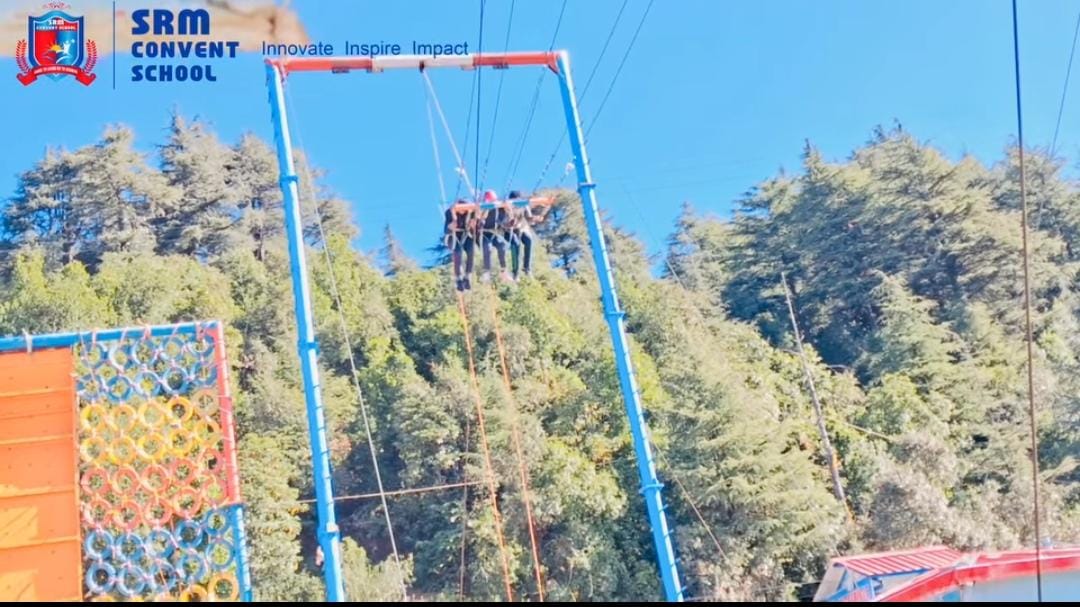 The students of Grade 8 to Grade 11 of SRM Convent School embarked on a thrilling excursion to Mussoorie and Kanatal from 6th November 2025 to 10th November 2025, filled with adventure, laughter, and unforgettable memories. During the trip, students experienced a wide range of adventure activities such as giant swing, tyre balancing, wall climbing, zip lining, sky cycling, burma bridge, and rappelling, which tested their courage and team spirit. The breathtaking views of the hills added to the excitement, making every moment a perfect blend of thrill and natural beauty. Evenings were made lively with a bonfire and DJ night, where students danced, sang, and celebrated together under the starry sky. The delicious meals and warm hospitality added to their joy and comfort throughout the stay. On the final day, students enjoyed a delightful visit to Kempty Falls and Mussoorie Lake, capturing scenic beauty and cherishing moments of togetherness. The trip was truly a memorable journey of adventure, bonding, and exploration, leaving the young SRMians with experiences they will treasure forever! 🌄✨